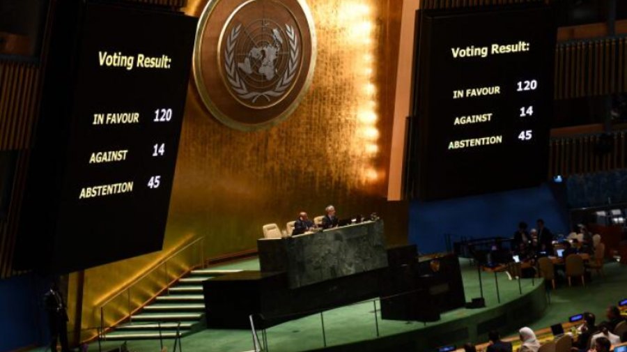 মঙ্গলবার সাধারণ পরিষদে প্রস্তাবটি উত্থাপন করে আরব রাষ্ট্রগুলো। এরপরই ভোটাভুটি অনুষ্ঠিত হয়। মানবিক কারণে যুদ্ধবিরতি পক্ষে ভোট দেন ১২০টির প্রতিনিধিরা। ভোটদানে বিরতি ছিল ৪৫টি দেশ। প্রস্তাবের বিপক্ষে ভোট দেয় যুক্তরাষ্ট্র ও ইসরায়েলসহ ১৪টি দেশ।
