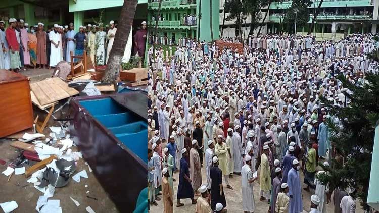 এর আগে বুধবার দুপুর থেকে মাদ্রাসার শিক্ষার্থীরা পাঁচ দফা দাবিতে বিক্ষোভ করেন। বিক্ষোভকারীদের দাবির প্রেক্ষিতে মাদ্রাসার মজলিশে শূরার স্থানীয় নেতৃবৃন্দ রাতে এক জরুরি বৈঠকে বসেন। রাত পৌনে ১১টার সময় দুই দফা দাবি মেনে নেয়া হয় সেগুলো হলো শিক্ষক আনাস মাদানীর বহিষ্কার ও মাদ্রাসার শিক্ষার্থীদের কোনো হয়রানি না করা।