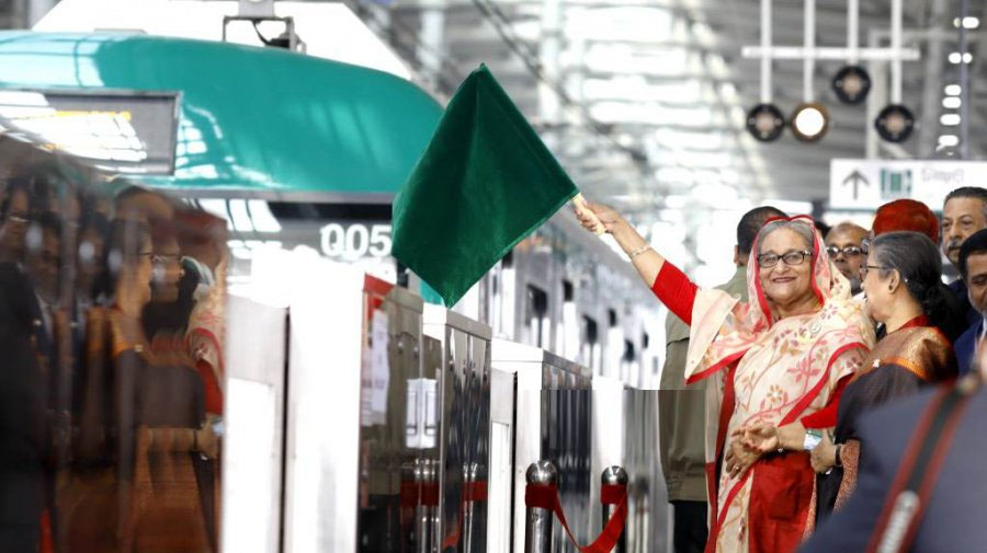 টিকিট কেটে প্রথম যাত্রী হিসেবে মেট্রোরেলে উঠলেন প্রধানমন্ত্রী শেখ হাসিনা। এর মধ্য দিয়ে যাত্রা শুরু করলো দেশের প্রথম মেট্রোরেল। রাজধানীর উত্তরা উত্তর স্টেশন থেকে বেলা ১টা ৫৩ মিনিটে প্রধানমন্ত্রীকে বহনকারী মেট্রোরেল যাত্রা শুরু করে। প্রধানমন্ত্রীর সঙ্গে ছিলেন তার বোন এবং জাতির জনকের কনিষ্ঠ কন্যা শেখ রেহানা। তিনিও টিকিট কেটে মেট্রোরেলে ওঠেন। বিরতিহীন যাত্রা করে ১০ মিনিট ১০ সেকেন্ডের মধ্যে আগারগাঁও স্টেশনে এসে থামে ট্রেন।