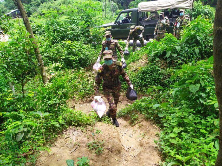 বৈশ্বিক মহামারি করোনায় ক্ষতিগ্রস্থ চট্টগ্রামের সাতকানিয়া ও লোহাগাড়ার অসহায় গরীব মানুষের ঘরে ঘরে ত্রাণ পৌঁছে দিচ্ছেন সেনা সদস্যরা। আর এই কাজটি বাস্তবায়ন করছে কক্সবাজারের রামু সেনানিবাসের সেনা সদস্যরা। এরই অংশ হিসেবে রামু সেনানিবাসের ১০ পদাতিক ডিভিশনের জিওসি’র সার্বিক নির্দেশনায় সোমবার (২৯ জুন) সকালে চট্টগ্রামের সাতকানিয়া ও লোহাগাড়ার দূর্গম এলাকার কর্মহীন হতদরিদ্র ২৫০টি পরিবারের কাছে ত্রাণ পৌঁছে দিয়েছে রামু সেনানিবাসের সেনাসদস্যরা। আর্তমানবতার সেবায় প্রতিকূল আবহাওয়া উপেক্ষা করে নিত্যপ্রয়োজনীয় দ্রব্য সামগ্রী নিজ কাঁধে বহন করে অভাবগ্রস্ত, ছিন্নমূল ও অসহায় মানুষদের দ্বারে দ্বারে পৌঁছে দিয়েছেন সেনা সদস্যরা। সেনাবাহিনীর এই মানবিক উদ্যোগ অসহায় মানুষের মুখে হাসি ফোটাতে সক্ষম হয়েছে বলে মনে করছেন উপকারভোগিরা। দূর্গম এলাকার মানুষেরা সেনাবাহিনীর এই ত্রাণ কার্যক্রমকে সাধুবাদ জানিয়েছে।
