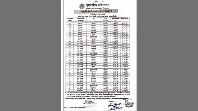 সেহরি ও ইফতারের সময়সূচি
