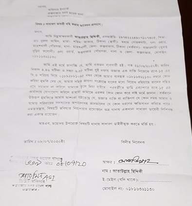 কক্সবাজার সদর থানায় দায়ের সাধারণ ডায়েরী (জিডি) নম্বর-৩৩৯, তারিখঃ ০৮/০৭/২০২০ ইং।