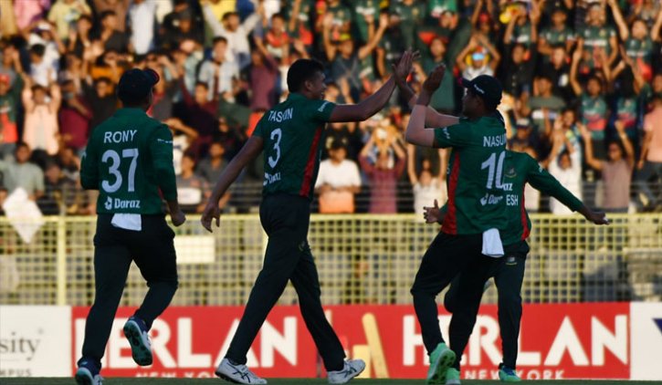 হারের শংকা উড়িয়ে হৃদয়-শামীমের ৪৩ বলে ৭৩ রানের জুটি গড়ে দিয়েছে জয়ের ভিত। করিম জানাতের হ্যাটট্রিকে যখন আবার তীরে এসে তরি ডোবার শংকা ঘিরে ধরে, তখন পেসার শরিফুল ইসলাম দারুণ কাটে নিমিষেই এনে দেন উল্লাস, উচ্ছ্বাস।