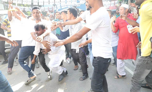 ধাওয়া দিয়ে হিরো আলমকে রাস্তায় ফেলে পেটালেন নৌকার ব্যাজধারীরা