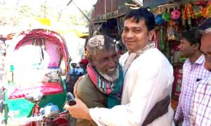 সাধারণ মানুষের সাথে মিশে যাওয়া যার স্বাভাবিক অভ্যাস। গত উপজেলা চেয়ারম্যান ভোটে এক ভোটারকে বুকে জড়িয়ে ধরছেন জননেতা সাজেদুল করিম। ফাইল ছবি ।