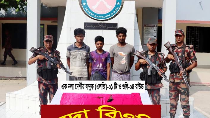টেকনাফে অস্ত্র ও গুলিসহ তিন রোহিঙ্গা যুবককে আটক করেছে বর্ডার গার্ড বাংলাদেশ (বিজিবি)। বুধবার (৩০ অক্টোবর) ভোরে উপজেলার হ্নীলা ইউনিয়নের লেদা খালে এই অভিযান পরিচালনা করা হয়।
