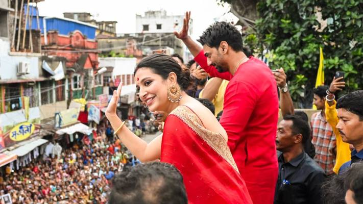 শেষ আসে বড় চমক। ভিড়ে ঠাসা জনতার মধ্যে দিয়ে, যত্ন করে শুভশ্রীকে আগলে, নায়িকার হাত ধরে তাকে গাড়িতে তুলে দেন দেব। তারপর সেই একই গাড়িতে উঠে পড়েন তিনি নিজেও।