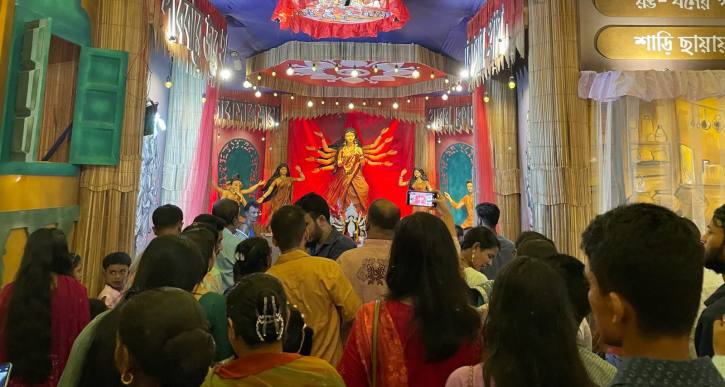 ৩১৭টি পূজা মণ্ডপে উৎসবের জাঁকজমক, কক্সবাজার শহরের প্রতিটি মণ্ডপে চলছে দুর্গা পূজার আচার-অনুষ্ঠান, সাথে হাজার হাজার ভক্তের ভিড়। কিন্তু, বুকের মাঝে ক্ষণিকের বিষাদ—আগামীকাল বিজয়া দশমী, বিদায় নিতে হবে মা দুর্গাকে।