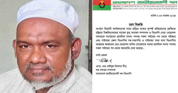 ভয়েস নিউজ ডেস্ক: দলীয় শৃঙ্খলা ভঙ্গ এবং দলের নীতি ও আদর্শ পরিপন্থী বিস্তারিত